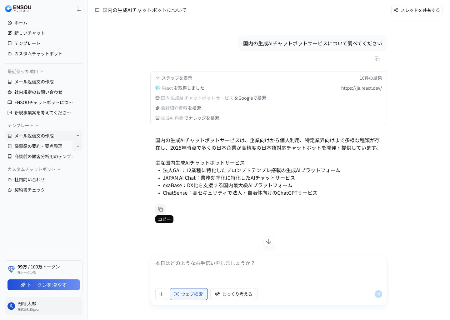 社内の機密情報をアップロードしたとき、外部に漏洩したり、学習データとして2次利用されない安全な環境を提供します。