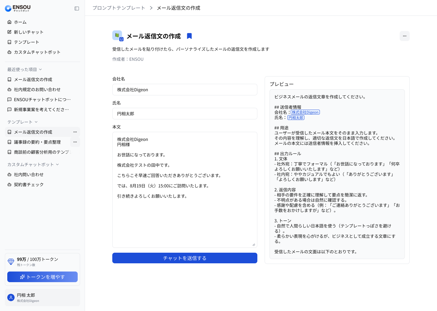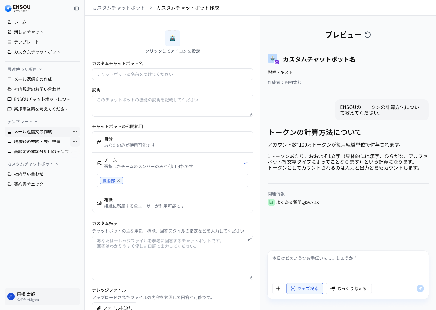 生成AIを全社導入したいけど従業員のリテラシー格差があり活用しきれるかわからない。3分でカスタムチャット(RAG)を構築、プロンプト入力が不要になるプロンプトテンプレート機能。
