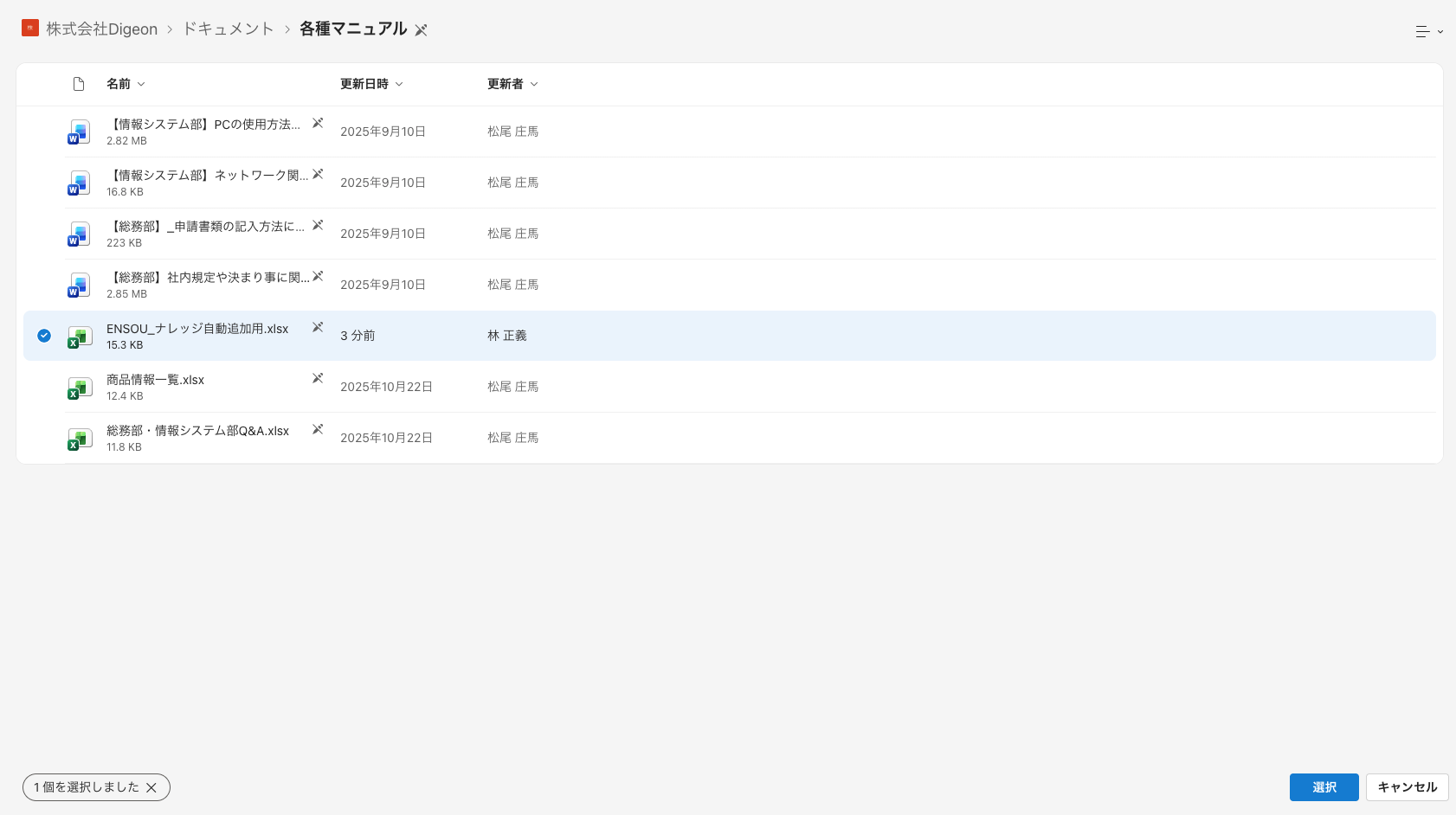ENSOU AIでは、SharePoint上の特定ファイル単位でナレッジ連携が可能なため、