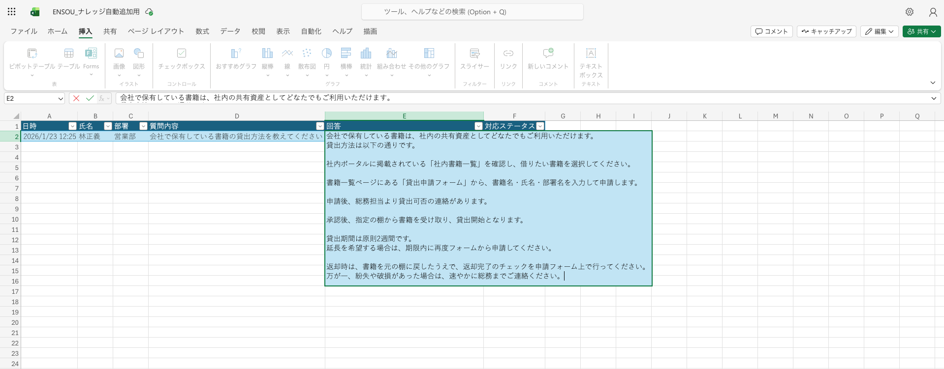 このExcelファイルがENSOU AIのナレッジとして登録されているため、