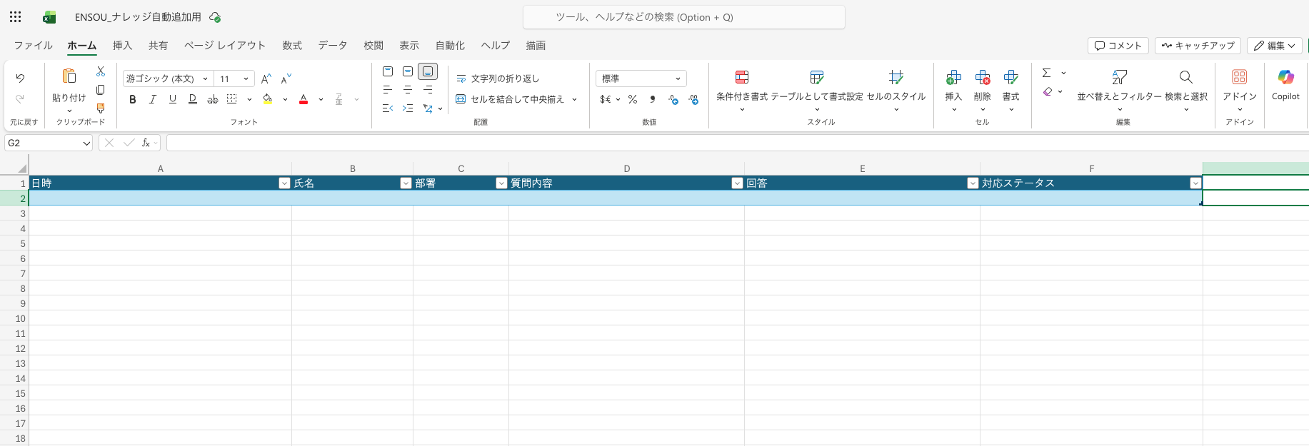 Excelに記録された未解決質問について、担当者が回答を記入します。