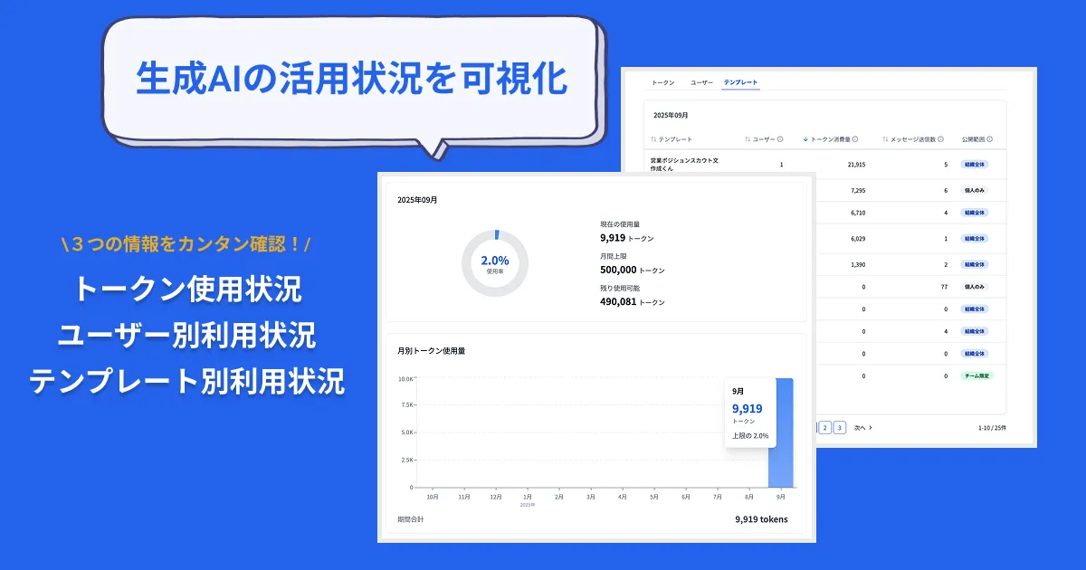 利用頻度や活用状況を可視化することで、組織における生成AI活用の改善サイクルを促進します。